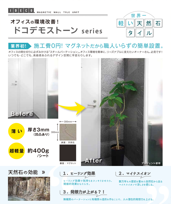 世界一軽い天然石タイルシートのドコデモストーン5アイテム